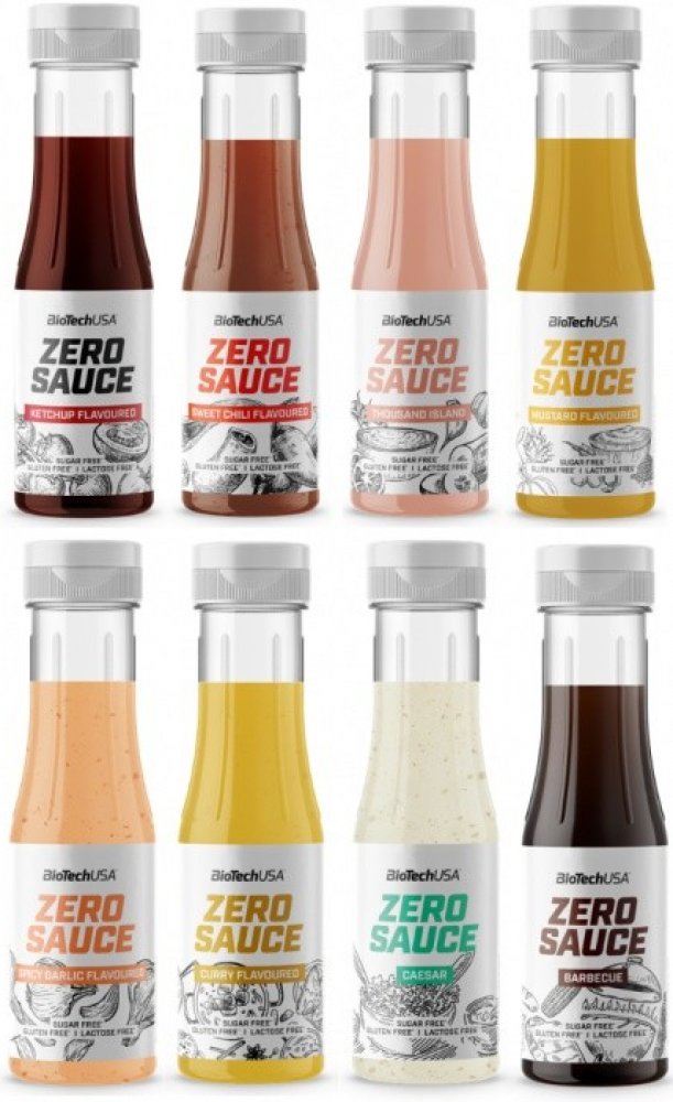 Hořčice, kečup, BBQ omáčka, chilli omáčka a další...ale netradičně! Víte, že s kečupem nebo BBQ omáčkou všechno chutná lépe, avšak přesto je omezujete, protože si dáváte pozor na příjem cukru. Pokud máte rádi kořeněné chutě, ostré chutě, ale přesto byste si rádi dávali pozor na svou stravu, omáčky Zero Sauce bez cukru * a bez tuku ** poskytují velmi dobrou alternativu k tradičním omáčkám!