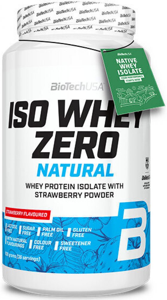 Biotech USA Iso Whey Zero Natural je lahodný syrovátkový izolát s přírodní příchutí. Iso Whey Zero Natural (nativní syrovátkový izolát) se vyrábí procesem mikro a ultrafiltrace z čerstvého kravského mléka po pasterizaci, díky čemuž si zachovává vysoký obsah bioaktivních frakcí, jako je imunoglobin (protilátka) a laktoferin (součást imunitního systému). Obsahuje až 20 g bílkovin v jedné porci, což přispívá k růstu a udržení svalové hmoty. Syrovátkový izolát se vyznačuje rychlou vstřebatelností a přirozeně vysokým obsahem esenciálních aminokyselin. Iso Whey Zero Natural byl očištěn od všech nežádoucích látek a neobsahuje cukr ani žádná barviva, sladidla, palmový olej nebo konzervační látky. Stejně jako všechny ostatní proteiny je i Iso Whey Zero bezlepkový a bezlaktózový.