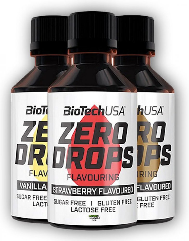 BioTech Zero Drops je bezkalorické tekuté sladidlo na bázi sukralózy dostupné v různých