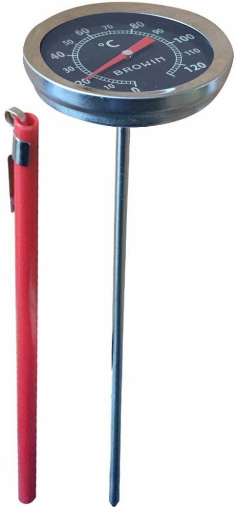 Tento vpichový teploměr je určen do udíren a je osazen dlouhým kovovým měřícím hrotem. Je vybaven stupnicí s kontrastními ukazateli pro snadné určení hodnot, disponuje standardním rozsahem měření 0°C až 120 °C. Tento vpichový teploměr pomůže k precizními výsledku při uzení.