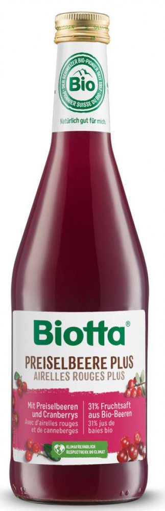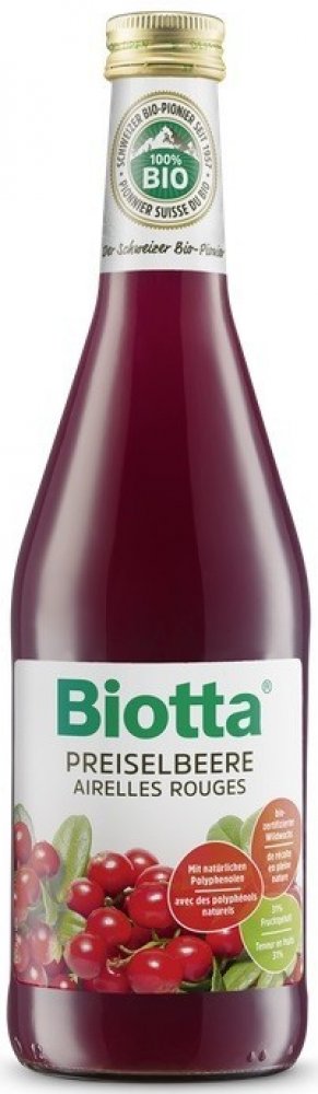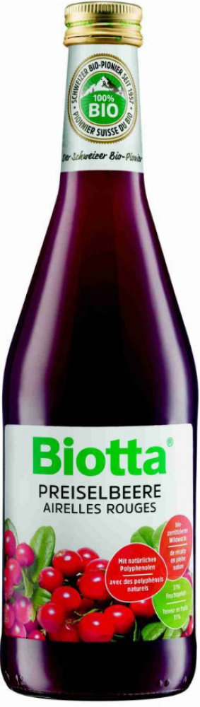 Brusinky obsahují přírodní tanin, který se může pozitivně podílet na správné funkci močového měchýře. Pro 40% všech žen po čtyřicítce a mnoho mužů je toto dobrý důvod pro pravidelné užívání Biotta bio-nektaru z horských brusinek.