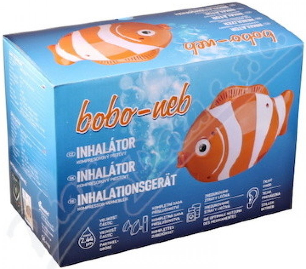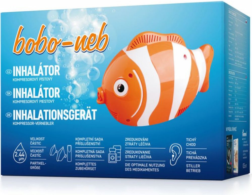 Inhalátor BOBONEB, maska pro děti a pro dospělé, náustek, filtr, vzduchová hadice 150 cm.