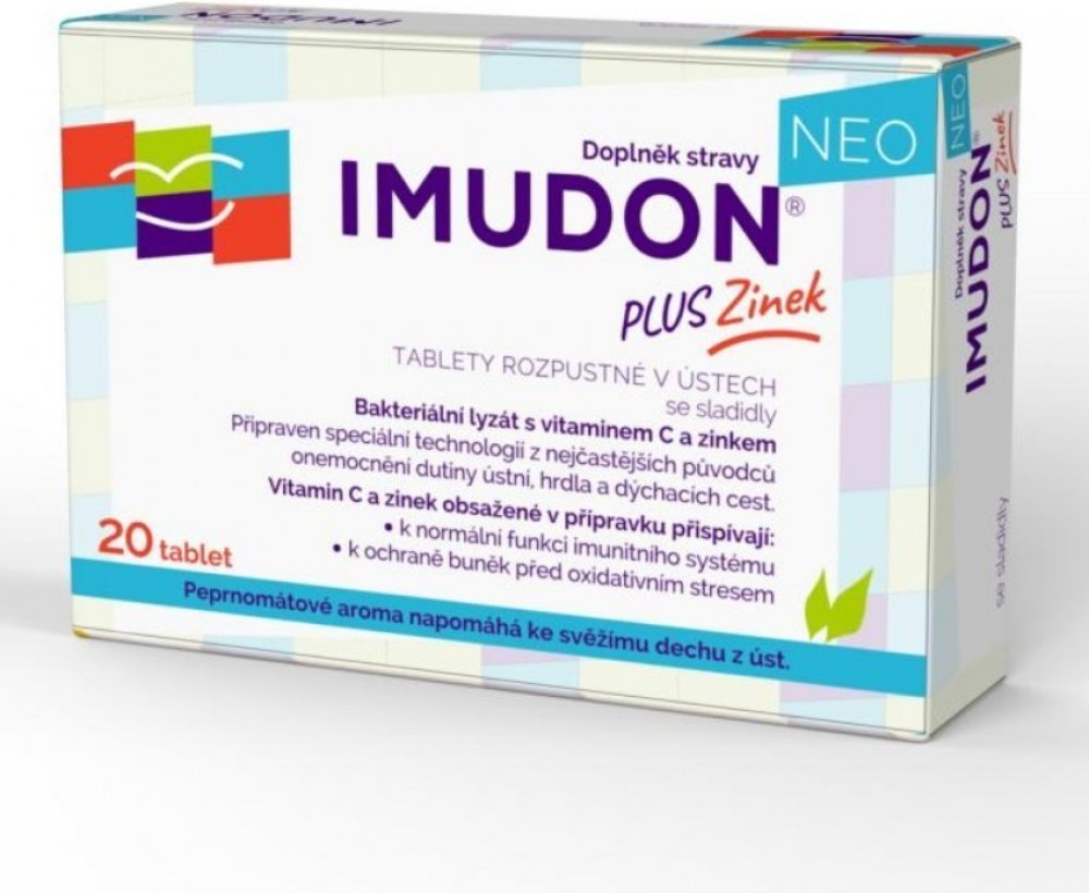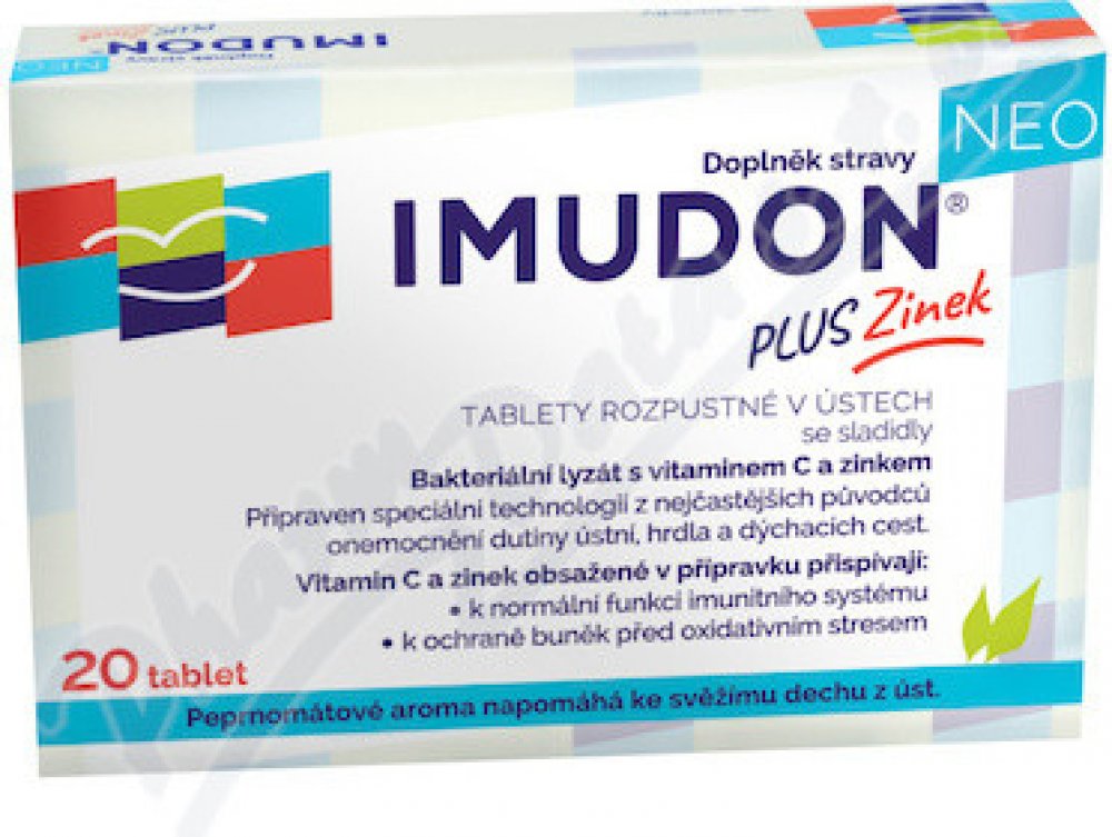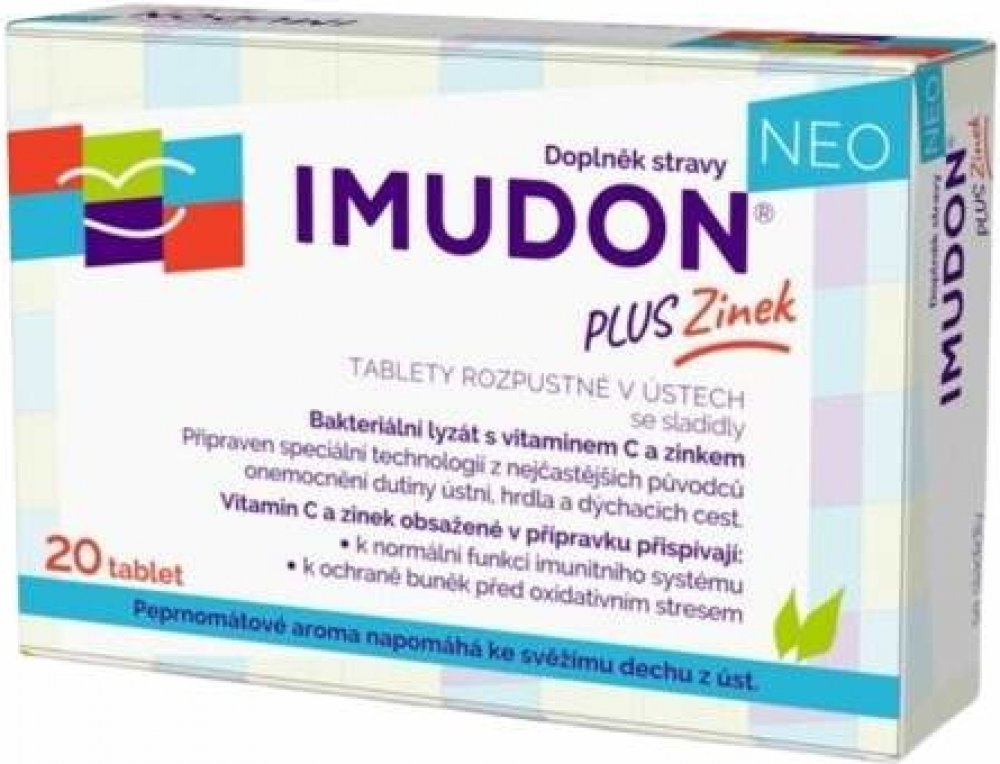 Imudon Neo s Vitamínem C a Zinkem je bakteriální lyzát připravený speciální technologií z nejčastějších původců onemocnění dutiny ústní, hrdla a dýchacích cest. Peprnomátové aroma napomáhá ke svěžímu dechu z úst.