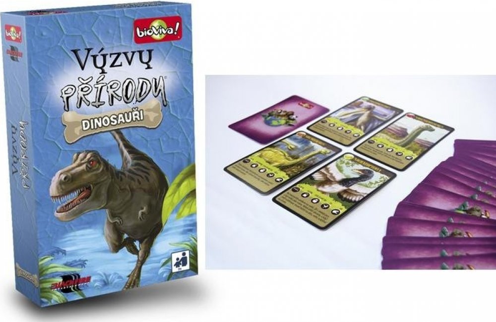 Vědomostní hra Výzvy přírody: Dinosauři od BioViva! Zábavná karetní hra, ve které se můžete dozvědět spoustu zajímavých informací z různých oblastí živočišné říše. Hra je kompletně v češtině.
