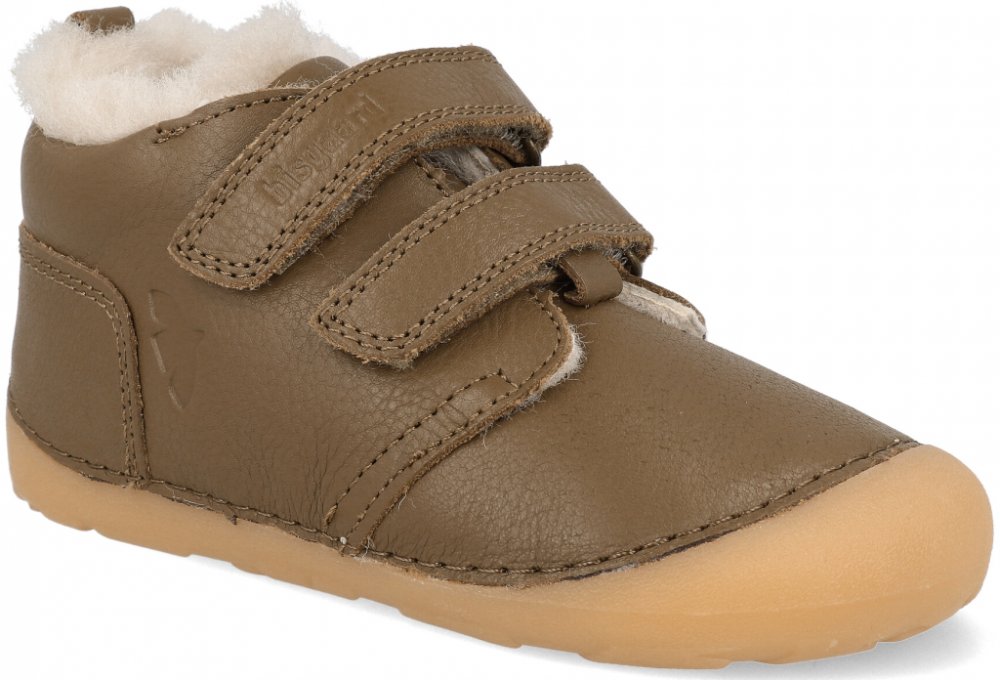 Bisgaard Barefoot dětské zimní boty Carter lamb khaki zelené