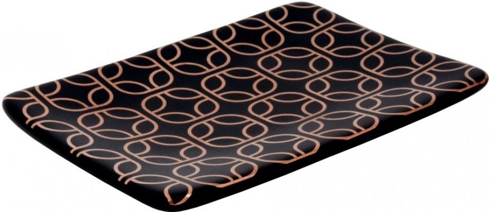 Mýdlenka z volně stojící kolekce GLOSSY je v souladu s nejnovějšími trendy zdobení. Udržovaná v duchu art deco je jistě originálním doplňkem každé koupelny. Černý porcelán je zdoben výrazným zlatým vzorem, který celé sérii dodává styl a eleganci. Kolekce obsahuje misku na mýdlo, dávkovač mýdla a kosmetickou sklenici.