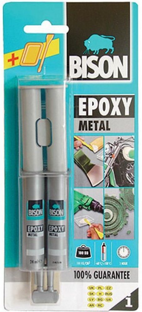 Bison Epoxy Metal je dvousložkové epoxidové lepidlo, které vyniká svojí mimořádnou pevností. Po promíchání se změní na šedou, tekutou ocel, která spolehlivě vyplňuje otvory, trhliny a štěrbiny. Jakmile ztvrdne, můžete jej bez obav vrtat, překrývat či oškrábávat – jeho pevnost nezná hranice!