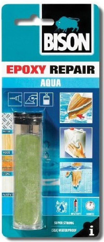 - Tmel BISON EPOXY REPAIR AQUA je určen speciálně na mokré povrchy a práci pod vodou