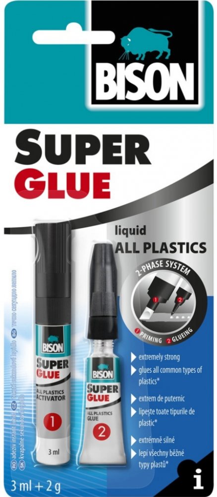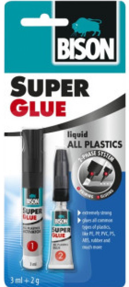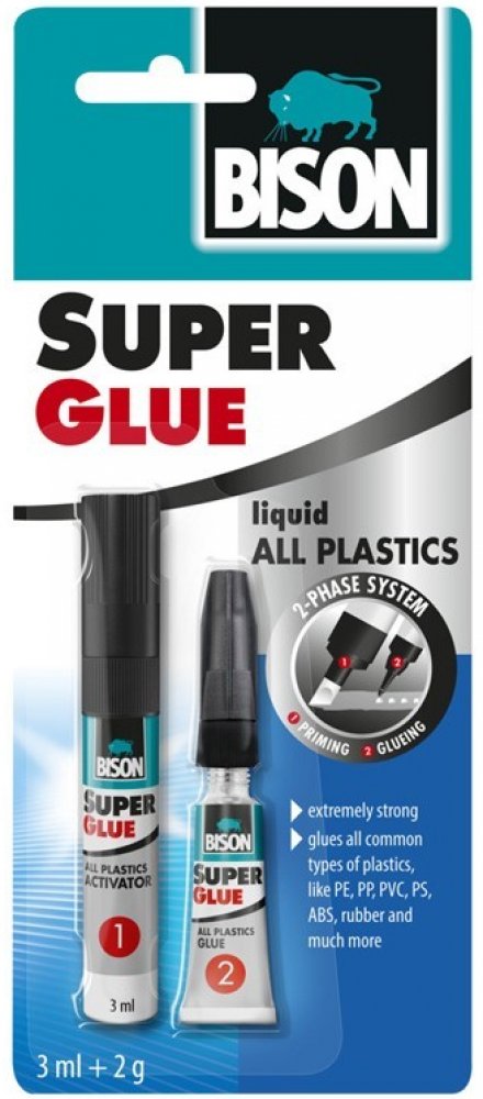 Bison Super Glue All Plastic - Lepidlo na všechny plasty // těžko lepitelné plasty 3 ml + 2 g