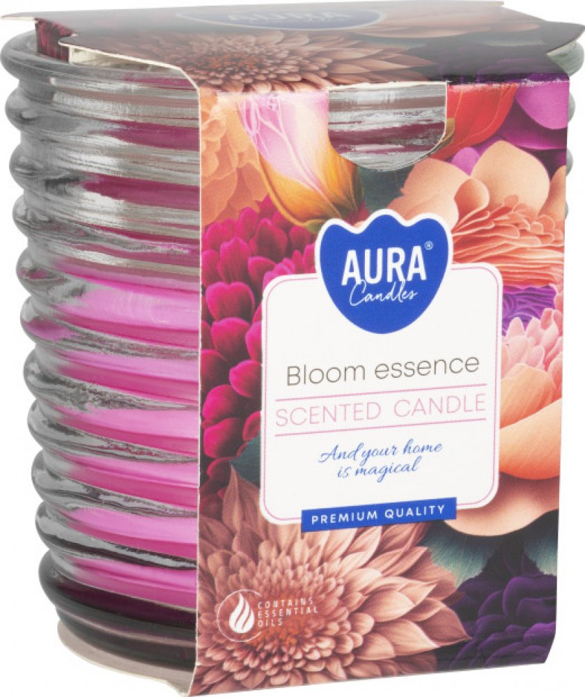 Svíčka Květinová esence z rýhovaného skla je krásným dekorativním prvkem každého interiéru. Svíčky v pruhovaném skle v šesti atraktivních a charakteristických vůních.