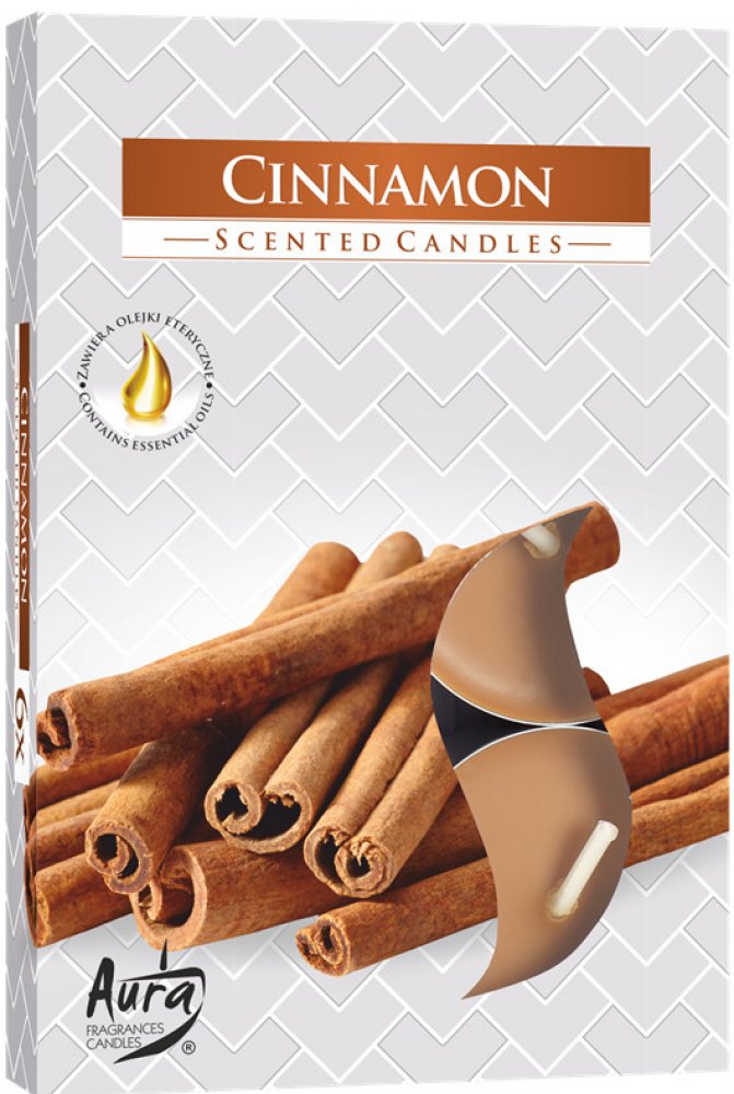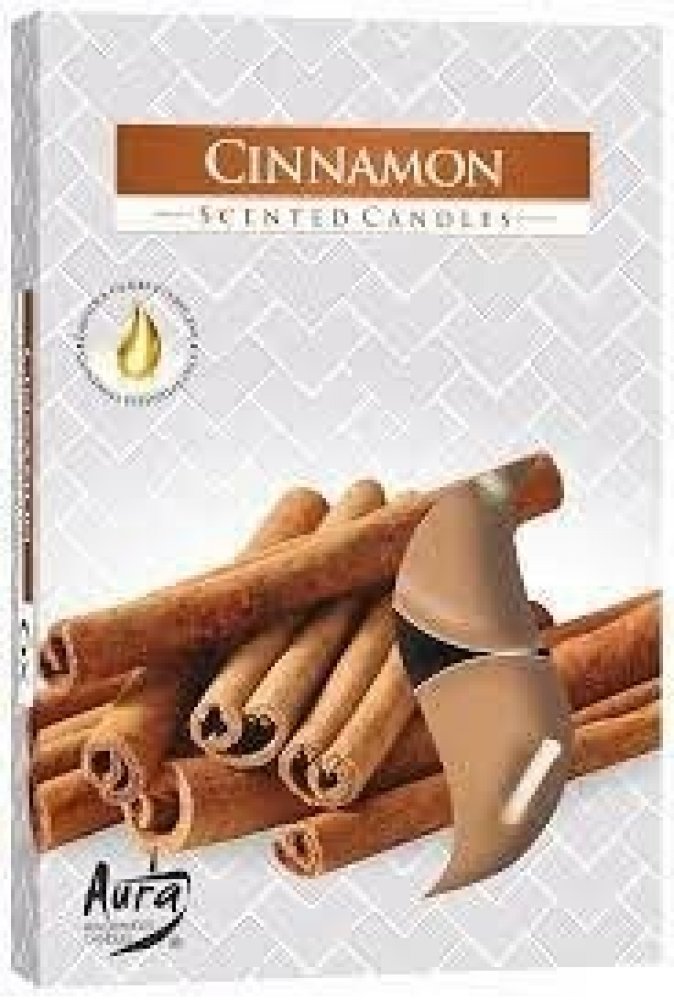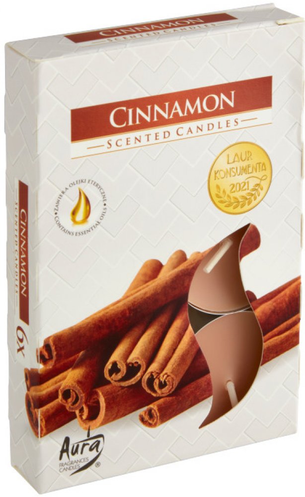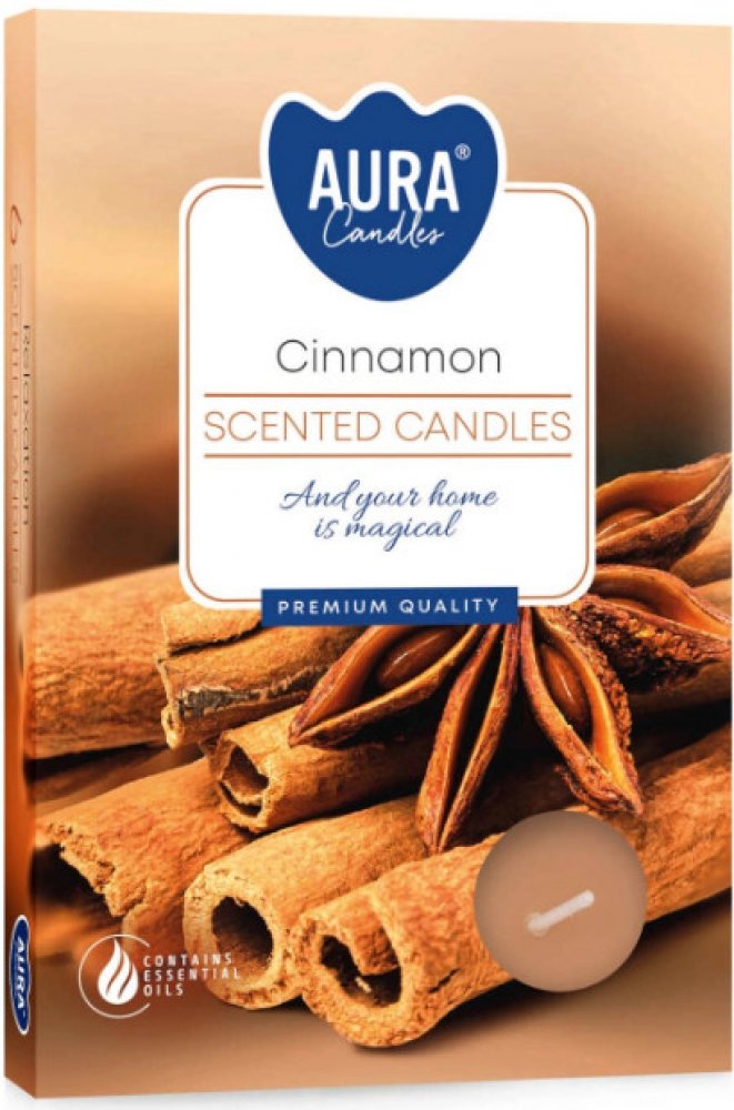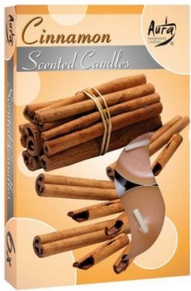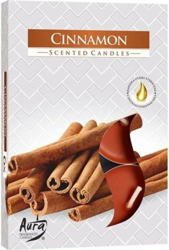Malé vonné svíčky Aura s aroma skořice jsou ideální pro podzimní a zimní večery, kdy vytvářejí útulnou a hřejivou atmosféru v interiéru. Jejich příjemná vůně připomíná perníčky, sušenky nebo horký nápoj se skořicí. Vonné čajové svíčky se často používají při aromaterapii a relaxaci, působí uklidňujícím dojmem na naši psychiku i náladu a dodávají prostoru harmonickou atmosféru. Pomáhají odpoutat se od každodenního stresu a vychutnat si chvíle odpočinku v pohodlí domova.