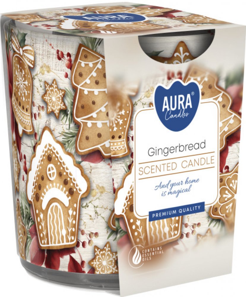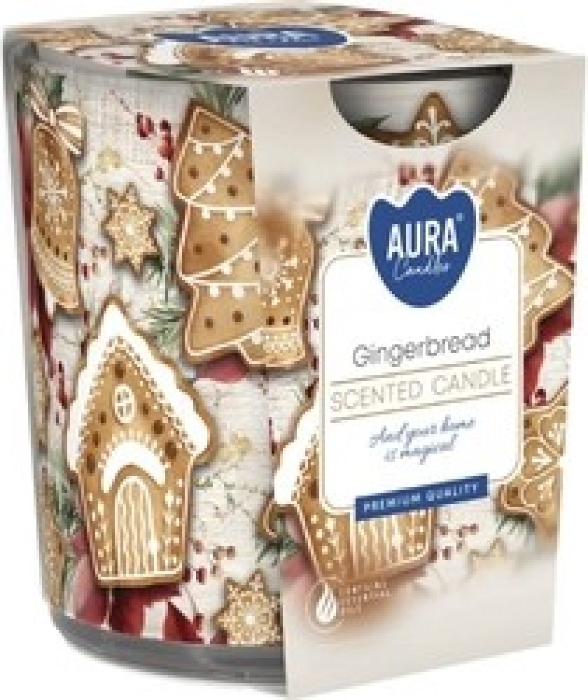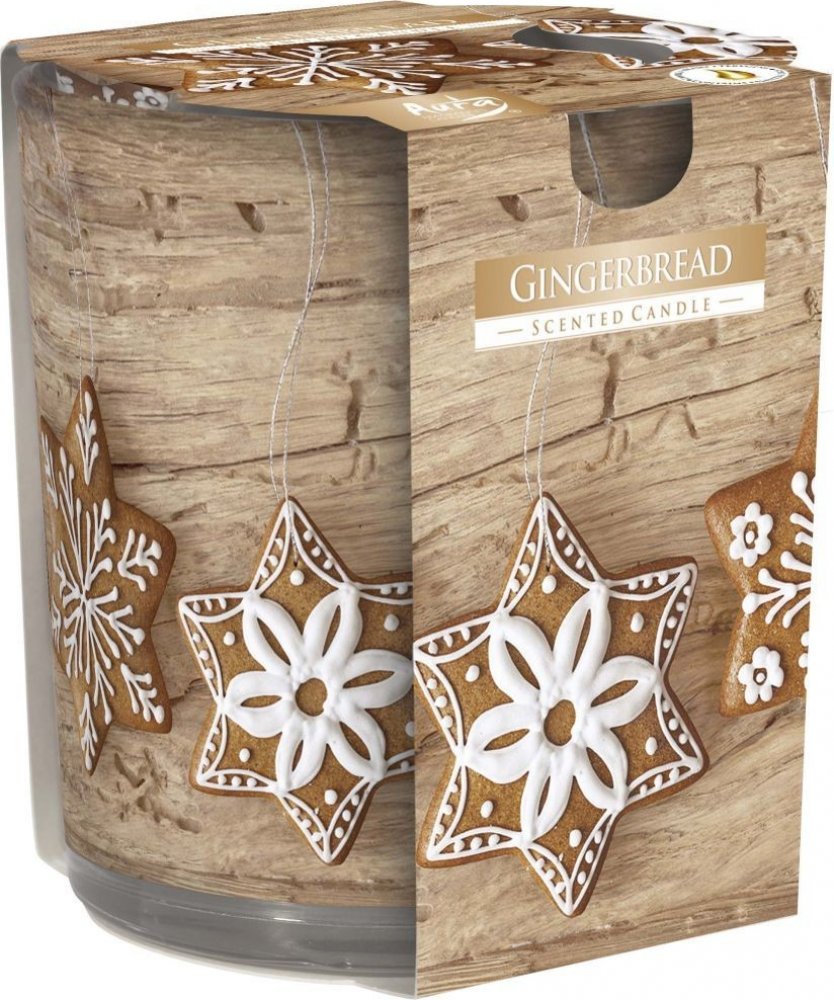 Dekorativní vonná svíčka ve skle 'Perník' o hmotnosti 100 g přináší sladkou a kořeněnou vůni perníku, která provoní váš interiér a navodí příjemný pocit domácí pohody a útulna. Díky skleněné nádobě je svíčka vhodná i jako stylový doplněk pro váš domov.