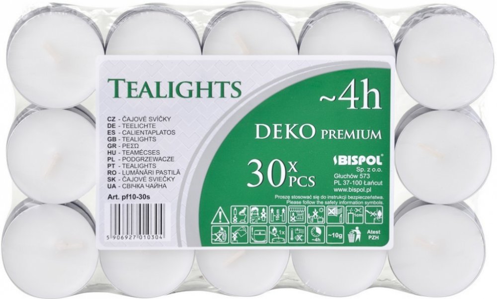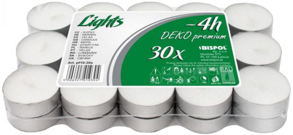 Bispol Deko Premium čajové svíčky bílé 30 ks