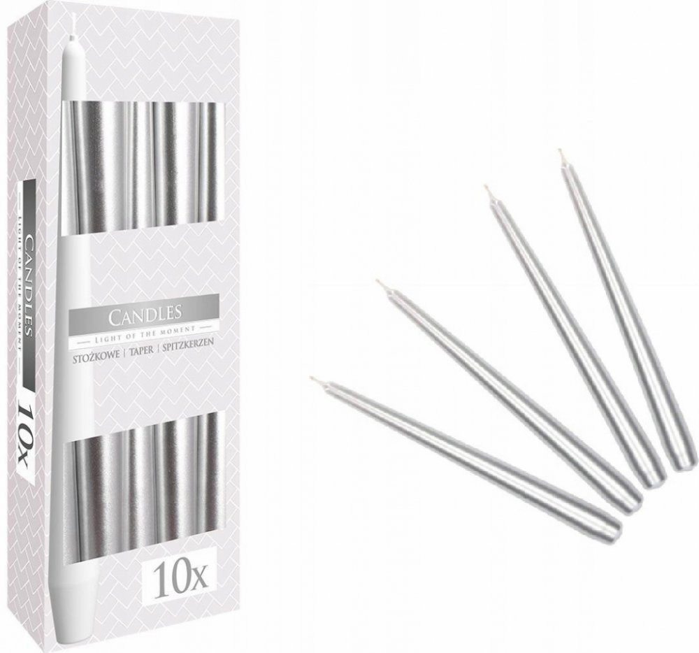 Hlavní vlastnosti svíčky BISPOL Kónické Metalická Stříbrná 10× 53 g Svíčka BISPOL perfektně doladí interiér vašeho domova Klasická svíčka BISPOL navodí příjemnou atmosféru v každém domově Díky svému tvaru najde využití na svícnech nebo adventních věncích Její podoba má vánoční design Svíčka není parfémovaná O hoření se stará bavlněný knot U svíčky BISPOL převládá stříbrná barva Hmotnost je 530 g