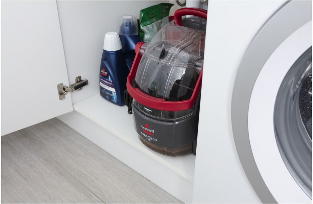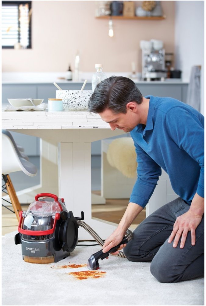 Díky čemu je SpotClean Pro™ účinný odstraňovač skvrn? SpotClean Pro™ v sobě kombinuje výkonné sání, účinek kartáčů a čisticího roztoku - to vše odstraňuje nečistoty a skvrny. Jeho dlouhá hadice a napájecí kabel vám umožní vyčistit i těžko dostupné oblasti, rohožky, schody a polstrování. Funkce SpotClean Pro™ nabízí velkokapacitní nádrž, kterou není nutné často doplňovat.