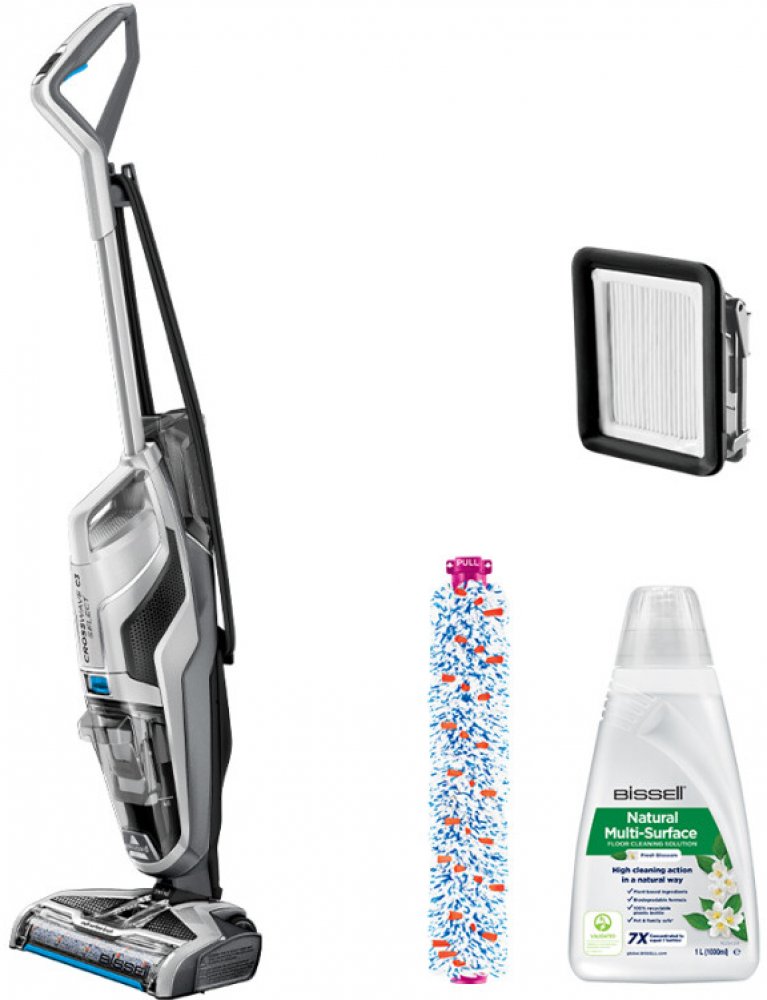 BISSELL® CrossWave® C3 Select vysává, vytírá a suší podlahy v jediném kroku. Zajišťuje výkonné vysávání mokrých i suchých nečistot a je ideální pro pravidelné čištění tvrdých podlah a koberců. Elektronická tlačítka umožňují okamžité přepnutí mezi povrchy a regulování množství vody na čištění. Na rozdíl od použití klasického mopu a kbelíku udržuje naše technologie dvou nádrží čistou a špinavou vodu odděleně, proto s přístrojem CrossWave® C3 Select čistíte podlahy vždy čerstvým roztokem. Díky FRESHSTART™ systému prevence zápachu antimikrobiální kartáčový válec a filtr nepřetržitě pracují tak, aby zabraňovaly vzniku zápachu a udržovaly svěžest. Dodávaný roztok na čištění podlah Natural Multi-Surface (1 l) odstraňuje pachy a zanechává váš domov příjemně svěží. Po úklidu všech podlah samočisticí cyklus vyčistí nejen kartáčový válec, ale také vnitřek přístroje.