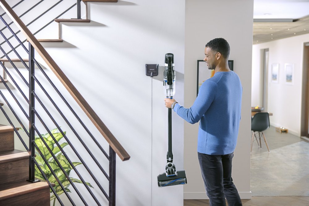 Součástí balení také LED motorizovaný turbo kartáč, LED štěrbinová hubice a prachový kartáč, držák na zeď s uchycením na nástavce, nabíječka