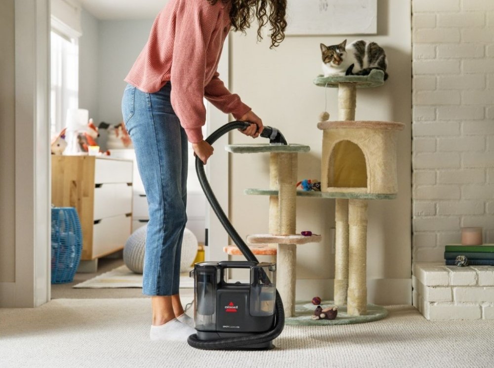 Čistič koberců Bissell SpotClean C5 Pro 3931NVyčistěte skvrny kdykoliv a kdekoliv s výkonným přenosným tepovačem koberců a čalounění Bissell SpotClean C5 Pro. Tento praktický pomocník usnadňuje odstraňování skvrn a fleků v domácnosti. Na fleky stačí nanést připravený roztok, vykartáčovat a odsát nečistoty. Snadno vyčistíte čalounění, koberce, koberečky, zvířecí pelíšky nebo interiéry automobilů. Díky dlouhé hadici s 10cm kartáčovým nástavcem, štěrbinovému nástavci a 4,3 m dlouhému kabelu se dostanete i do obtížně přístupných míst. Čistič koberců Bissell SpotClean C5 Pro 3931N si oblíbíte pro jeho lehkou konstrukci, snadné ovládání a kompaktní velikost, která umožňuje snadné uskladnění. Systém dvou oddělených nádrží zajišťuje, že čistá a špinavá voda zůstávají oddělené, takže vždy čistíte s čistým roztokem. Klíčové vlastnosti čističe koberců Bissell SpotClean C5 Pro 3931NÚčinná trojkombinace – nastříkejte, vykartáčujte a odsajte1,7 m dlouhá hadice pro svobodu pohybu10cm...