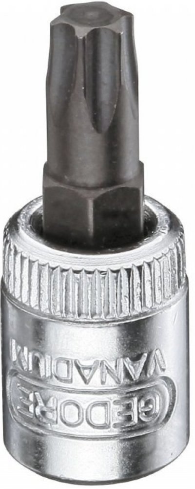 Adaptér-bit 1/4" pro šrouby s vnitřním TORX®Provedení: Se záchytnou drážkou kuličky, drsně rýhované.Z vanadové oceli GEDORE 31CrV3, broušené a pochromované, hroty z vanadové speciální oceli GEDORE, brunýrované.