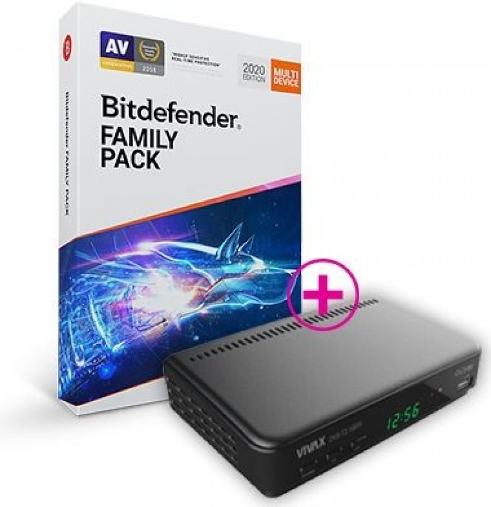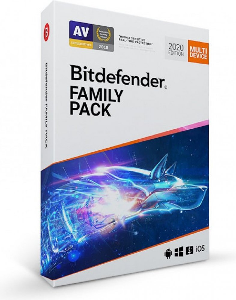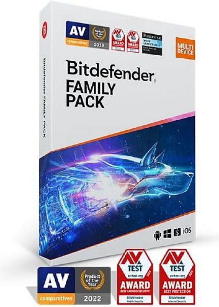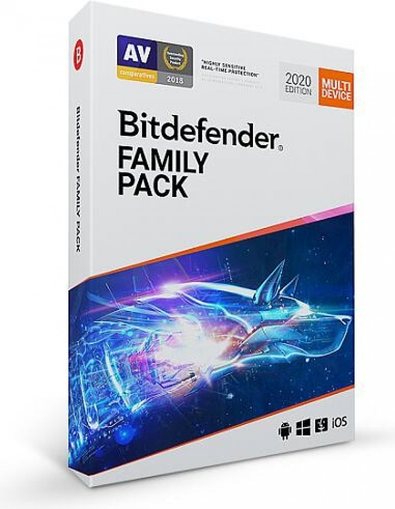 Antivirová ochrana Bitdefender Family Pack je určena pro zařízení se systémy Windows, macOS, Android i iOS. Chrání proti virům a ransomwaru, ochraňuje soukromí na veřejné Wi-Fi síti, zabezpečuje placení online, pomáhá optimalizovat výkon počítače či mobilu, chrání také před phishingem a podvodnými útoky, ochraňuje webkameru a mikrofon. Podporované systémy jsou Windows 7 SP 1 a novější, macOS X Yosemite (10.10) a novější, iOS 11.2 a novější, Android 4.1 a novější. Elektronická licence online. 15 licencí na 12 měsíců.