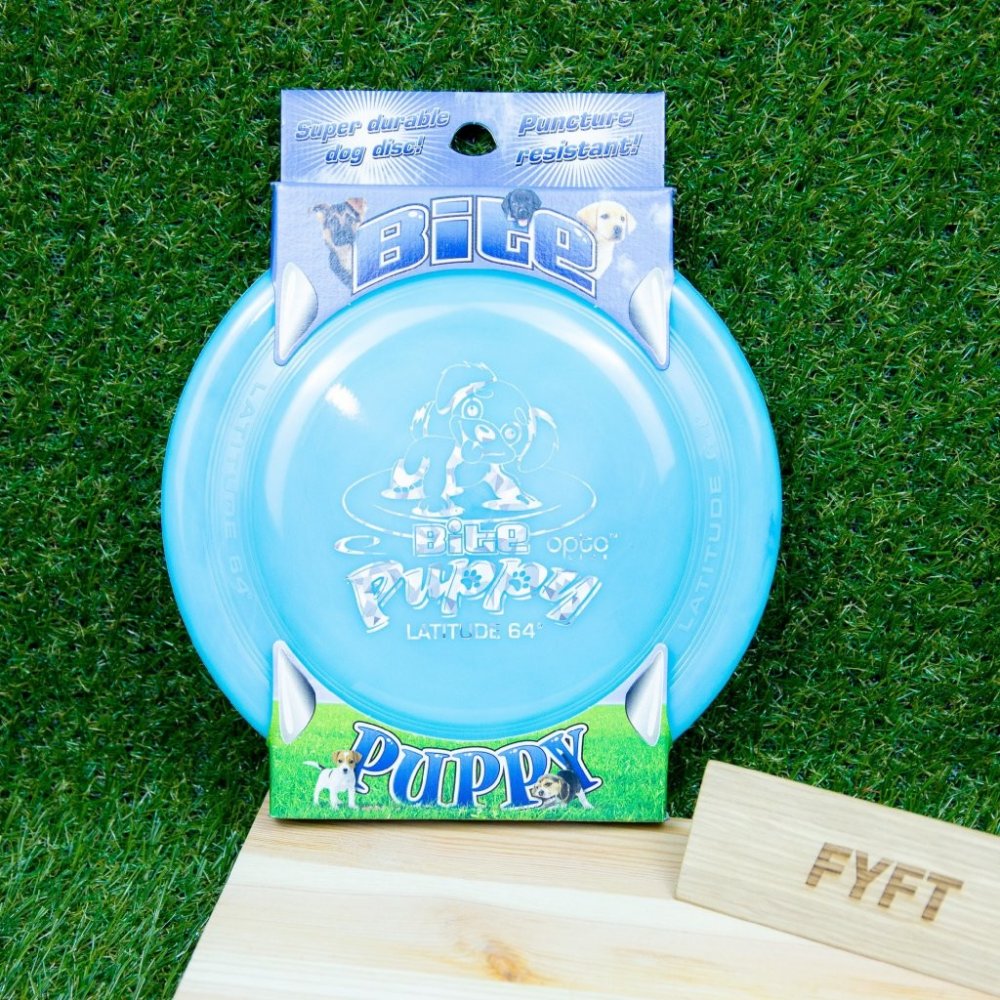 - Disk Puppy už nelze použít na discgolf, je menší a lehčí (90g). Méně létá ve větru, ale za to je přenositelnější a je použitelnější i pro hrátky s menšími pejsky.