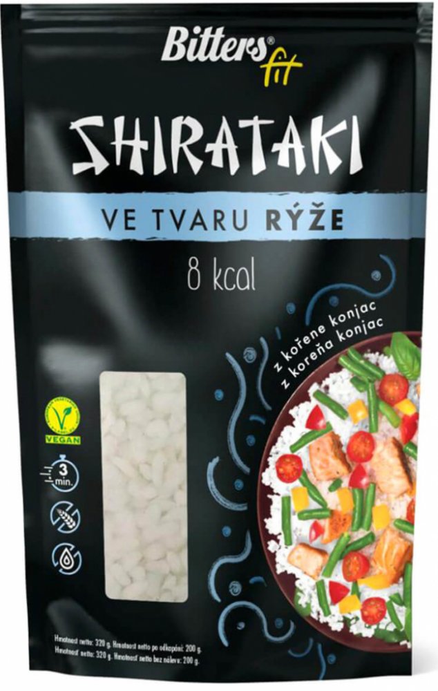 Bitters Shirataki konjakové těstoviny ve tvaru rýže Datum minimální trvanlivosti produktu je do 26.7.2025 !
