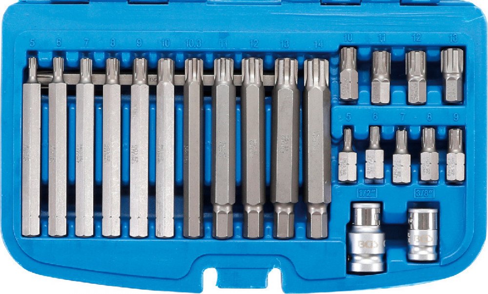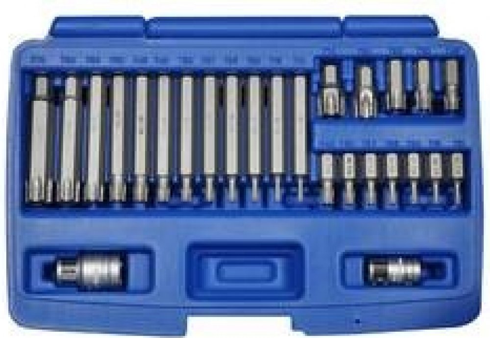 zahrnuje následující nástroje: bity, každá velikost v délce 30 a 100 mm, šestihranný pohon 10 mm (3/8"), drážkování (pro Ribe): M5 - M6 - M7 - M8 - M9 - M10 - M11 - M12 - M13 bity, 100 mm, 10 mm (3/8") šestihranný pohon, drážkování (pro Ribe): M14 a M10.3 bitový adaptér 12,5 mm (1/2") a 10 mm (3/8") disk