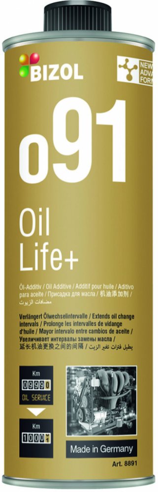 BIZOL Oil Life+ o91 je aditivum do motorového oleje vyrobené v Německu speciálně vyvinuté pro prodloužení intervalu výměny oleje. Vysoce účinné látky zlepšující mazivost chrání motor před oxidací a korozí a zvyšují celkové základní číslo (TBN) až o 15 %. BIZOL Oil Life+ o91 omezuje stárnutí oleje a chrání před třením a opotřebením. To má za následek zvýšenou životnost motoru. .