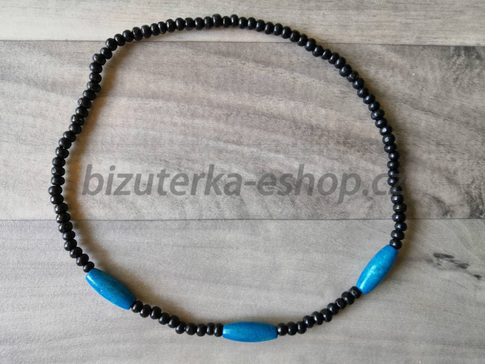 Bizuterka-eshop.cz dřevěné korále na krk černomodré BZ-07077