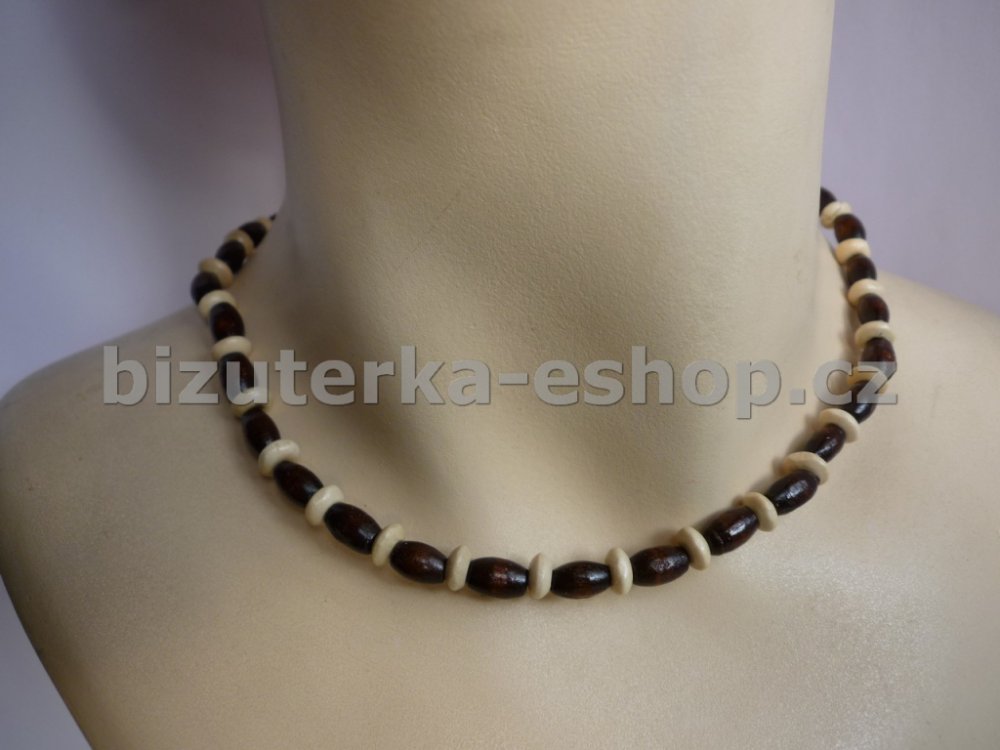 Bizuterka-eshop.cz dřevěné korále na krk hnědo smetanové BZ-6641