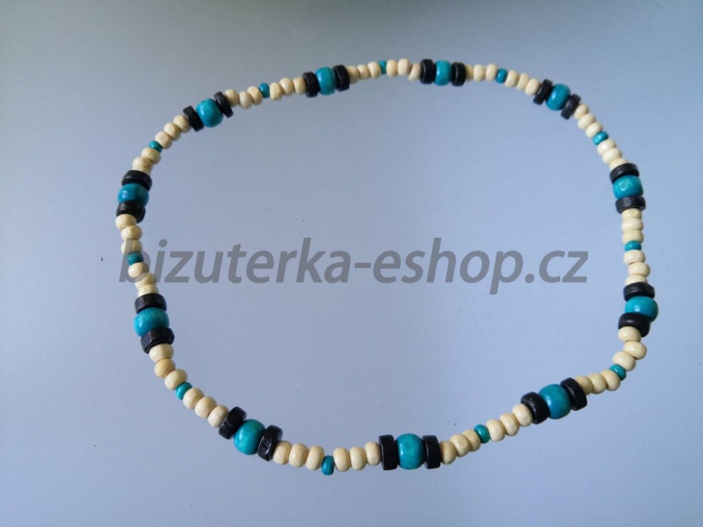 Bizuterka-eshop.cz dřevěné korále na krk smetanovo černo modré BZ-07147