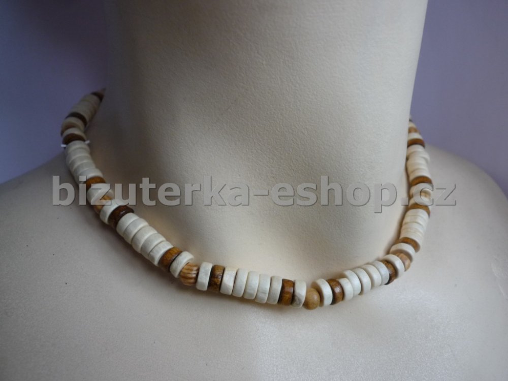 Bizuterka-eshop.cz dřevěné korále na krk smetanovo hnědé BZ-6674