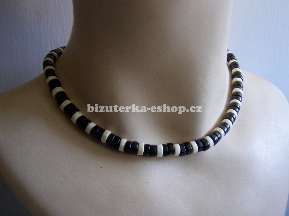 Bizuterka-eshop.cz korále na krk dřevěné černo smetanové BZ-06168