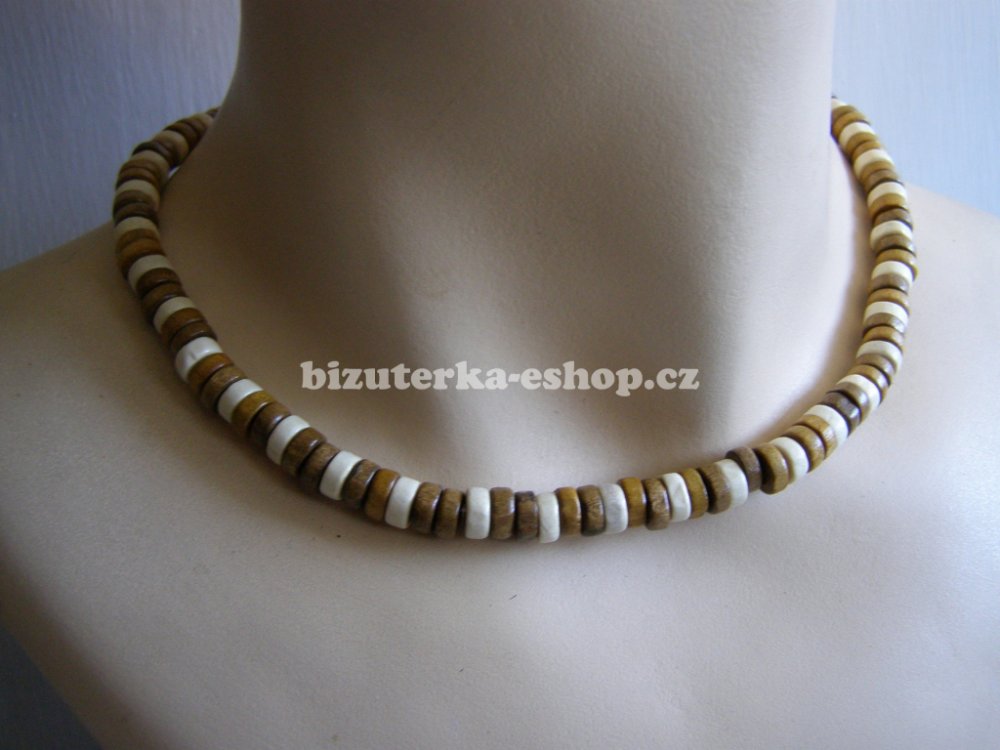 Bizuterka-eshop.cz korále na krk dřevěné hnědo smetanové BZ-06169