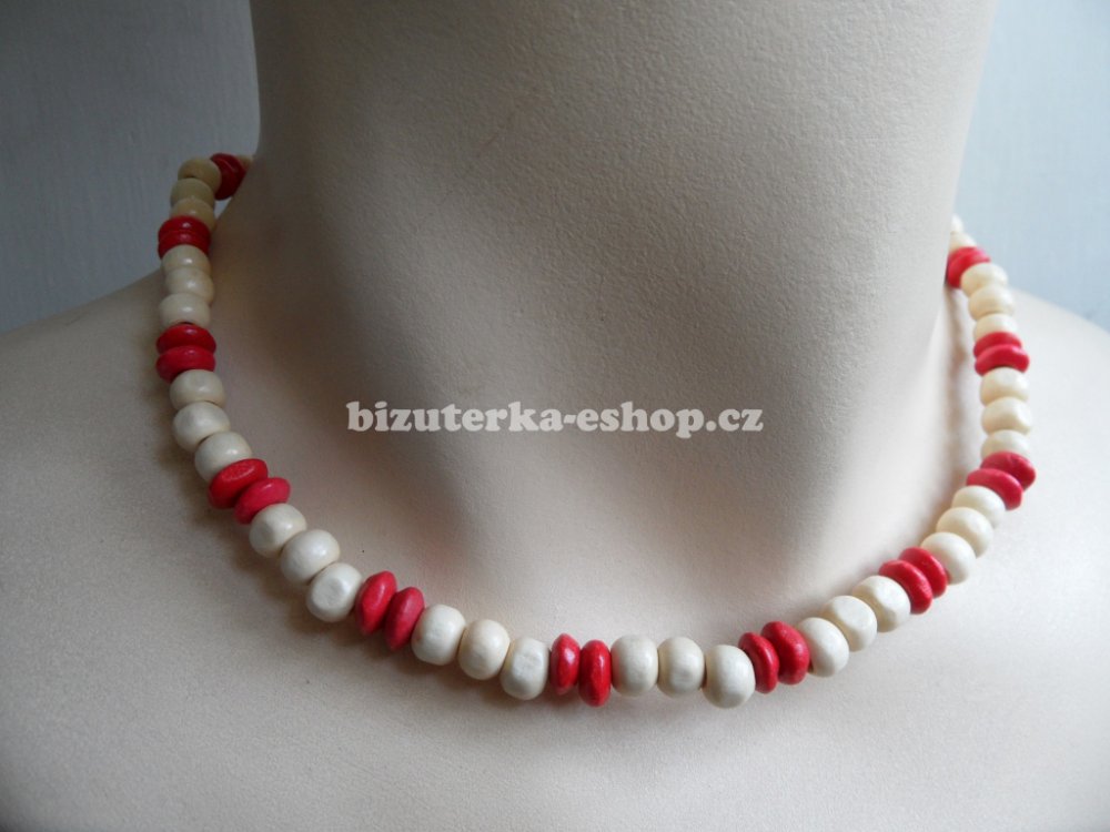 Bizuterka-eshop.cz korále na krk dřevěné smetanovo červené BZ-06554