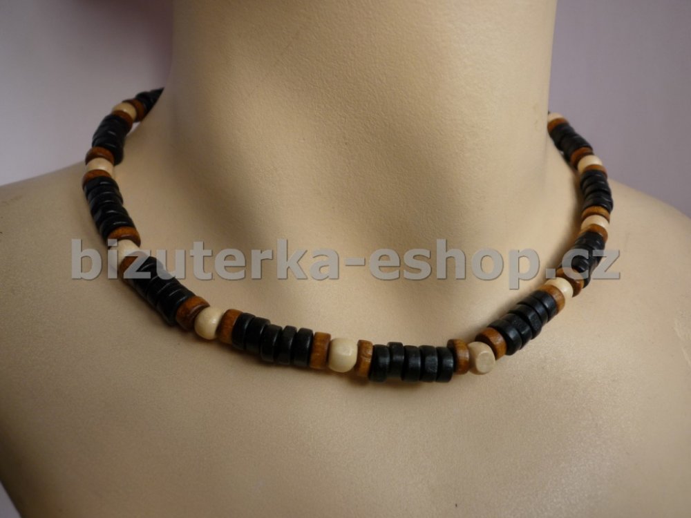Bizuterka-eshop.cz korále na krk dřevěné tříbarevné tmavé BZ-6638