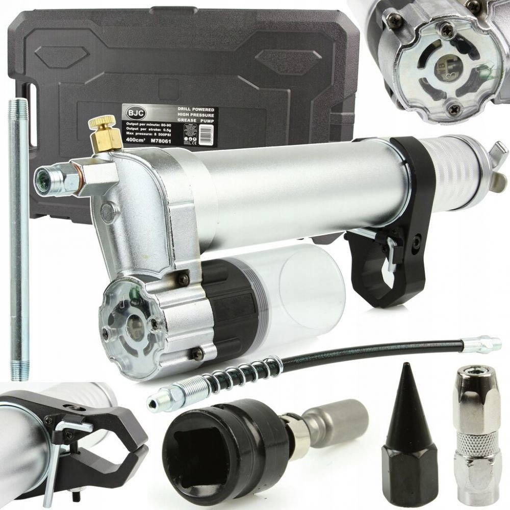 Jedním z významných prvků je nástavec na odsávání tuku, který lze použít pro standardní nádoby na tuk, což usnadňuje údržbu a čištění. Maznice je rovněž kompatibilní s různými typy vrtaček a šroubováků, včetně vrtaček se příklepem a rázových utahováků. Držák zařízení je nastavitelný, což umožňuje používání elektrického nářadí o průměru od 3,80 cm do 7,6 cm, což dodává této maznici vynikající flexibilitu a široké využití ve vaší dílně či garáži. Celkově je maznice na vrtačku od BJC praktickým a spolehlivým partnerem pro údržbu a mazání vašich mechanických zařízení.