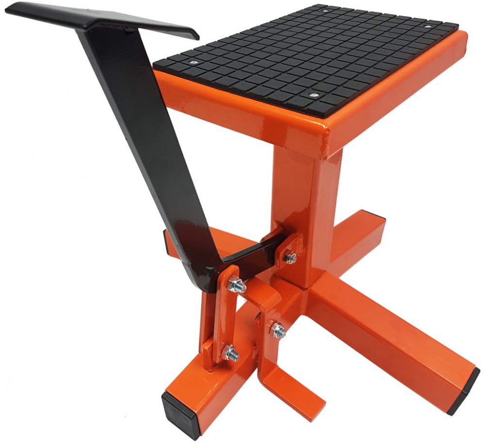 Kvalitní motokrosový stojan vyrobený ze zesílené oceli. Podložka je vyrobena z kvalitní gumy.