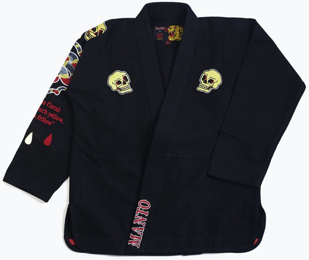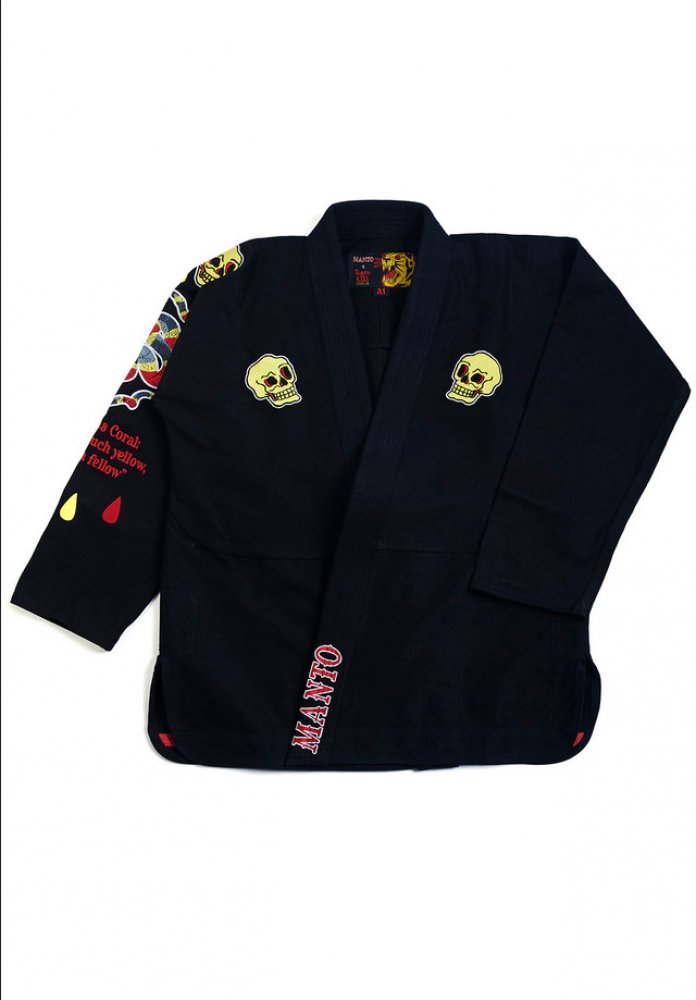 Kimono na BJJ MANTO "CORAL" - černéKimono na BJJ MANTO "CORAL" v černé barvě pro brazilské jiu-jitsu se skládá z bavlněného kabátu o gramáži 450 g/m2 a z bavlněných kalhot. Kalhoty ke kimonu se stahovací šňůrkou jsou vyrobeny z 10oz ripstopové směsi bavlny a kepru.- MANTO x TigerKiss Design (Kostarika)- Tkanina Perleťová vazba 450 g/m2- Bavlněné keprové kalhoty 10oz- Zesílené švy- Rychleschnoucí límec vyplněný pěnou EVA- Dodáváno bez bílého opasku.MANTO