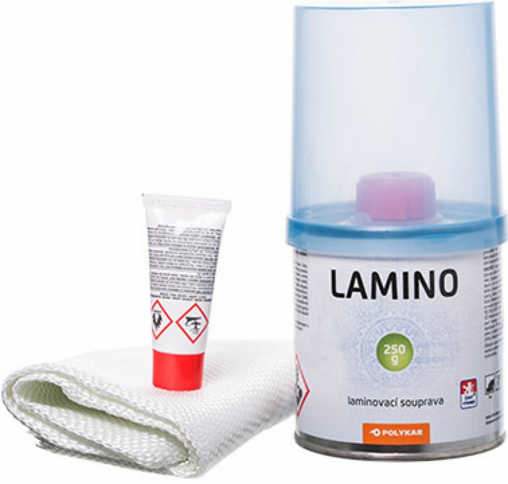 PolyKar Lamino je dvousložková laminovací souprava - obsahuje pryskyřici, iniciátor a pás skelné tkaniny (20 x 125 cm 0,25m2).PolyKar Lamino se používa pro drobné opravy děr a prasklin nebo na přemostění slabých či prorezavělých míst.