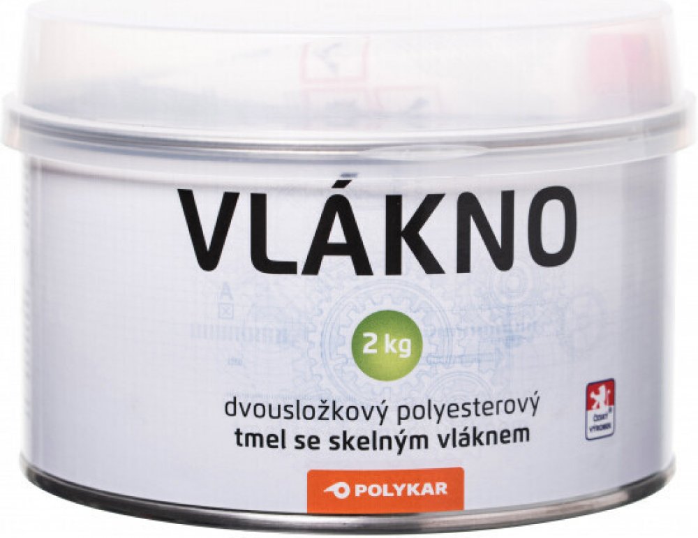 Tmel s vysokým obsahem skelného vlákna (6 mm), umožňující vytvořit velmi pevnou, skelnými vlákny svázanou vrstvu tmelu, kterou lze podle potřeby brousit Určený pro tmelení zvlášť velkého rozsahu popřípadě pro přemostění slabých nebo prorezavělých míst a d mel s vysokým obsahem skelného vlákna (6 mm), umožňující vytvořit velmi pevnou, skelnými vlákny svázanou vrstvu tmelu, kterou lze podle potřeby brousit Určený pro tmelení zvlášť velkého rozsahu popřípadě pro přemostění slabých nebo prorezavělých míst a děr, vhodný především pro kovové povrchy nebo sklolaminát Tmel se nesmí používat na tmelení míst, která přicházejí do přímého styku s potravinami a pitnou vodou Tmel s vysokým obsahem skelného vlákna (6 mm), umožňující vytvořit velmi pevnou, skelnými vlákny svázanou vrstvu tmelu, kterou lze podle potřeby brousit. Určený pro tmelení zvlášť velkého rozsahu popřípadě pro přemostění slabých nebo prorezavělých míst a děr, vhodný především pro kovové povrchy nebo sklolaminát. Tmel se nesmí používat na tmelení míst, která přicházejí do přímého styku s potravinami a pitnou vodou. Aplikace:Povrch je nutné zbavit rzi a obrousit brusným papírem P80. Povrch musí být čistý, suchý, bez prachu a mastnoty. Pro maximální antikorozní ochranu použijte nejprve epoxidový nebo polyuretanový základ. Tmel neaplikujte na reaktivní, jednosložkové a nitrocelulózové základy. Nanáší se stěrkou. Tužení:Tmel se tuží tvrdidlem (PE-iniciátor, dibenzoylperoxid, červená pasta v tubě) v hmotnostním poměru 100:2 - 100 dílů tmelu : 2 dílům tvrdidla – doporučený poměr pro teplotu 23 °C. Dobra zpracovatelnosti:Tmel je nutné při teplotě 23 °C a poměru tužení 100:2 zpracovat do 5 minut po smíchání s tvrdidlem. Při teplotách nižších než 23 °C (minimálně 17 °C) se doba zpracovatelnosti prodlužuje, při teplotách vyšších se zkracuje. Úpravou poměru tužení lze zčásti eliminovat vliv teploty na dobu zpracovatelnosti. Poměr tužení:- nejméně 100:1 – prodlouží dobu zpracovatelnosti- nejvíce 100:3 – zkrátí dobu zpracovatelnosti Broušení:Tmel je při teplotě 23 °C a poměru tužení 100:2 brousitelný za 25-35 minut. Pro broušení doporučujeme použít rotační nebo vibrační brusku a brusný papír P80-120. Vrchní nátěry Na tmel je možné použít všechny běžné nátěrové systémy. Tmel odolává teplotám 80 - 110 °C. Čištění pomůcek:Znečistěné části pomůcek lze očistit ředidlem POLYKAR ŘEDIDLO POLYESTEROVÉ nebo nitroředidlem C6000. Očistit lze pouze nevytvrzený tmel.