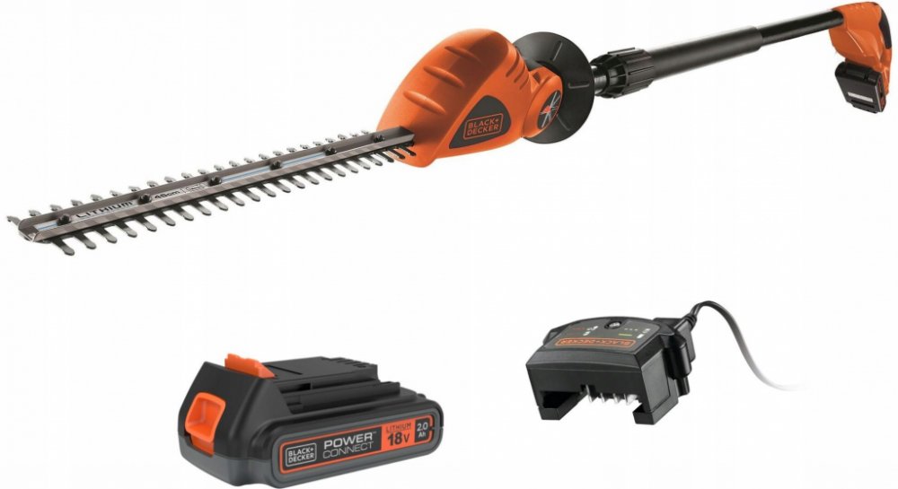 Rukojeť a nože zajišťují pracovní dosah 1,98 m a po nasazení prodloužené rukojeti pracovní dosah 3,5 m, což je ideální pro práci s velmi vysokými živými ploty