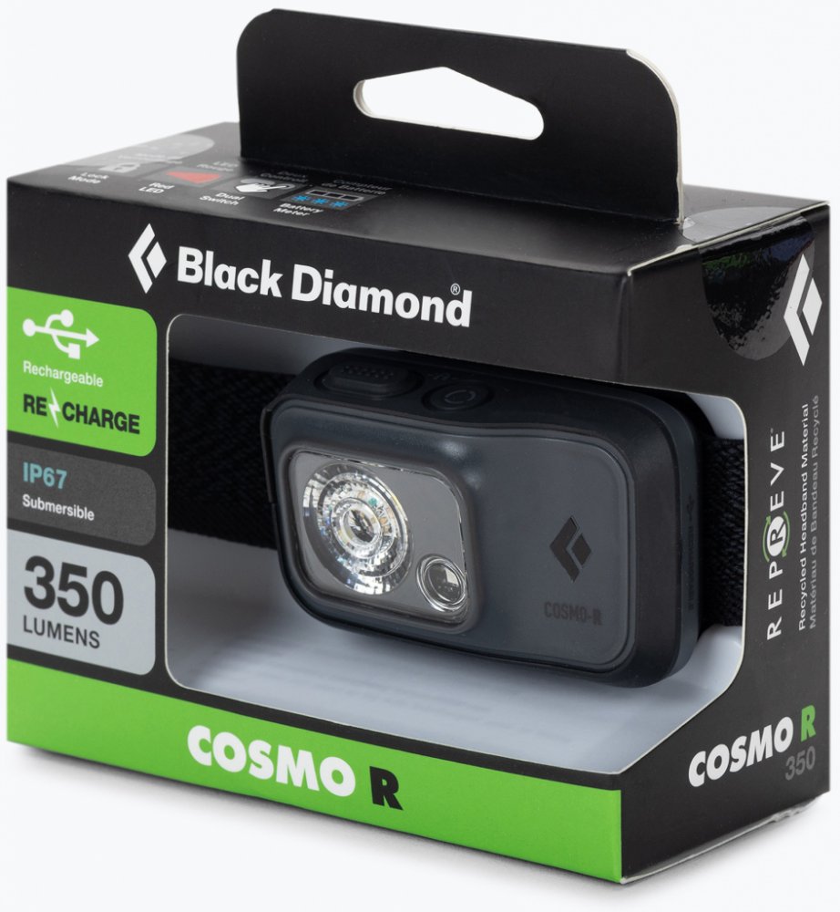 Kompaktní, lehká a dobíjecí čelová lampa Black Diamond Cosmo R-350 nabízí variabilitu osvětlení a je vybavena také červenou výstražnou diodou. Univerzální čelovka s výborným poměrem cena a výkon. Nabídne Vám dostatek světla doma, v kempu při vaření večeře, při slaňování a pod.