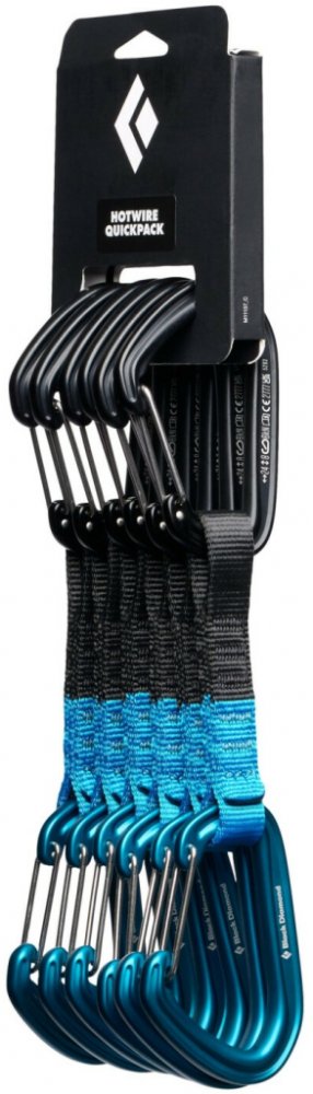 Expreska se dvěma karabinami Black Diamond HotWire. Díky velké světlosti se horní karabina bude dobře cvakat i do macatého kruhu. Spodní karabina HotWire s drátěným zámkem je určená pro lano, jako prevence tzv. „flash efektu“ tedy mžikového otevření západky při zachycení pádu.