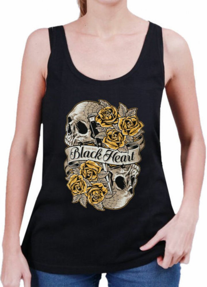 tílko BLACK HEART ROMANTIC černá M dámské lehce elastické tílko s předním potiskem.