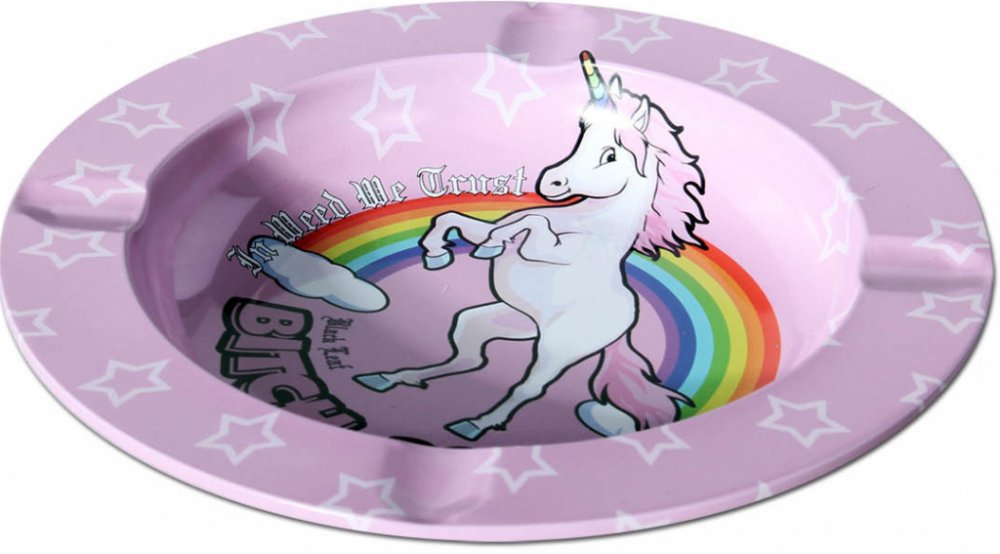 Kovový popelník s motivem o průměru 14 cm. Kovový popelník od značky Black Leaf je potištěn motivem jednorožce a má nápaditou růžovou barvu. Tento kovový popelník je skvělou a levnou alternativou ke klasickým skleněným popelníkům, hodí se všude tam, kde by mohlo dojít k rozbití skleněného popelníku.