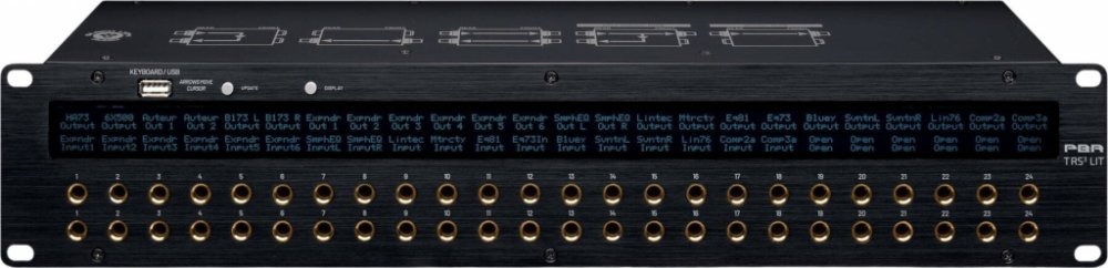 Patchpanel s konektory TRS 6,3 mm, displej pro přehledné označení vstupů a výstupů, 96 audiofilských konektorů se zlacenými kontakty, 48 propojovacích bodů, přepínání tří módů pro každou odpovídající dvojici konektorů, ovládání displeje klávesnicí nebo nahráním popisů z USB flash disku, aplikace PatchCAD BLA Edition