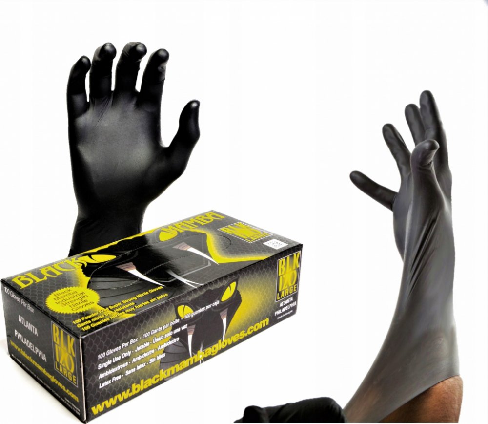Nitrilové rukavice Black Mamba Chemicky odolné nitrilové rukavice Black Mamba jsou jednorázové rukavice s vysokou odolností proti protržení, které jsou vhodné pro náročné pracovní podmínky. Black Mamba rukavice jsou zaslouženě hodnoceny jako nejlepší nitrilové rukavice na světě. Tyto rukavice disponují vysokou chemickou odolností a jsou vhodné například pro práci s agresivní autokosmetikou. Složen...
