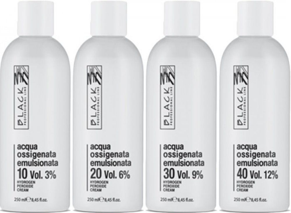 Peroxid vodíku Black se dodává v emulzi, jejíž výhodou je hutnější konzistence vzhledem k běžnému tekutému peroxidu vodíku. Krémová konzistence tohoto výrobku zaručuje snazší použití, zabraňuje problémům se stékáním a je k vlasům šetrnější. PRO PROFESIONÁLNÍ POUŽITÍ. Způsob použití: 5 VOL. (1,5%) - použijte jako aktivátor nebo pro "décapage"10 VOL.(3%) - krytí a barvení tón v tónu15 VOL.(4.5%) - krytí tmavých odstínů20 VOL.(6%) - krytí a současné zesvětlení o 1,5 odstínu30 VOL.(9%) - krytí a současné zesvětlení o 2 odstíny40 VOL.(12%) - krytí a současné zesvětlení o 3-6 odstíny Black Professional Line Black je italská profesionální vlasová kosmetika určená nejen do kadeřnických salónů. Značku Black vyrábí Parisienne Italia, která klade důraz především na komplexní a inovativní skladbu výrobků. Výsledkem je velmi kvalitní řada, kterou oceňují kadeřníci pro její jednoduchost k použití a cenovou dostupnost.
