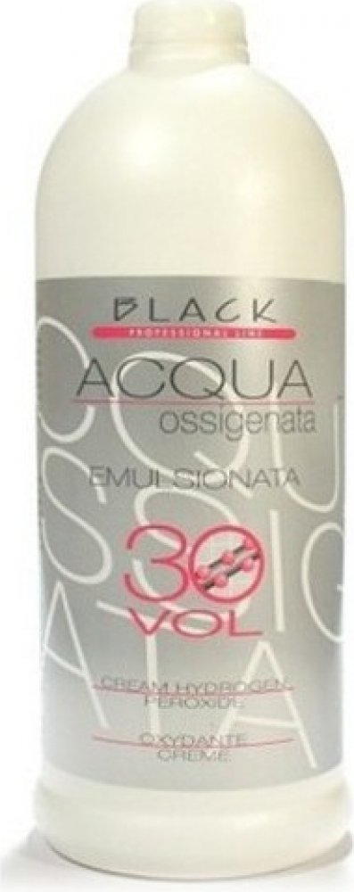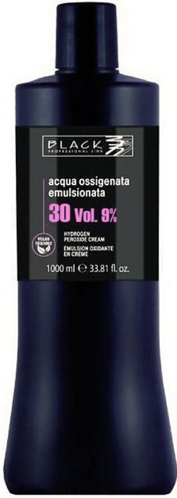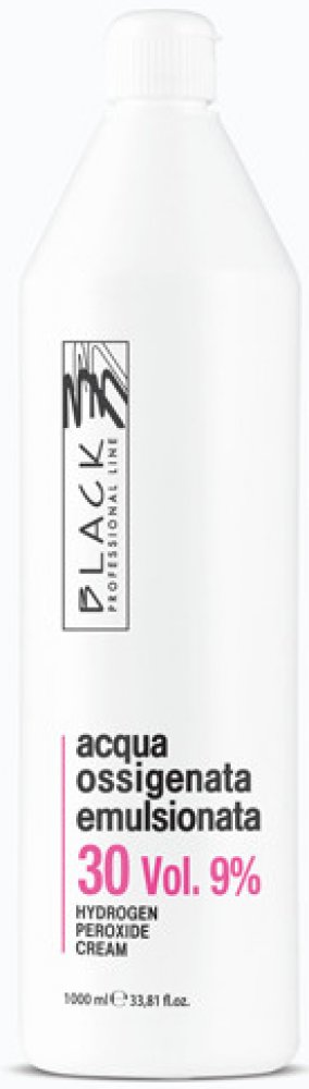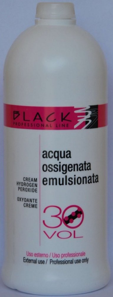 BLACK Professional krémový peroxid vodíku 30 VOL (9%) - krytí a současné zesvětlení o 2 odstíny. Peroxid vodíku Black se dodává v emulzi, jejíž výhodou je hutnější konzistence vzhledem k běžnému tekutému peroxidu vodíku. Krémová konzistence tohoto výrobku zaručuje snazší použití, zabraňuje problémům se stékáním a je k vlasům šetrnější.